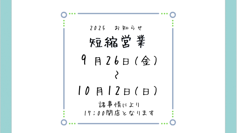 短縮営業のお知らせ